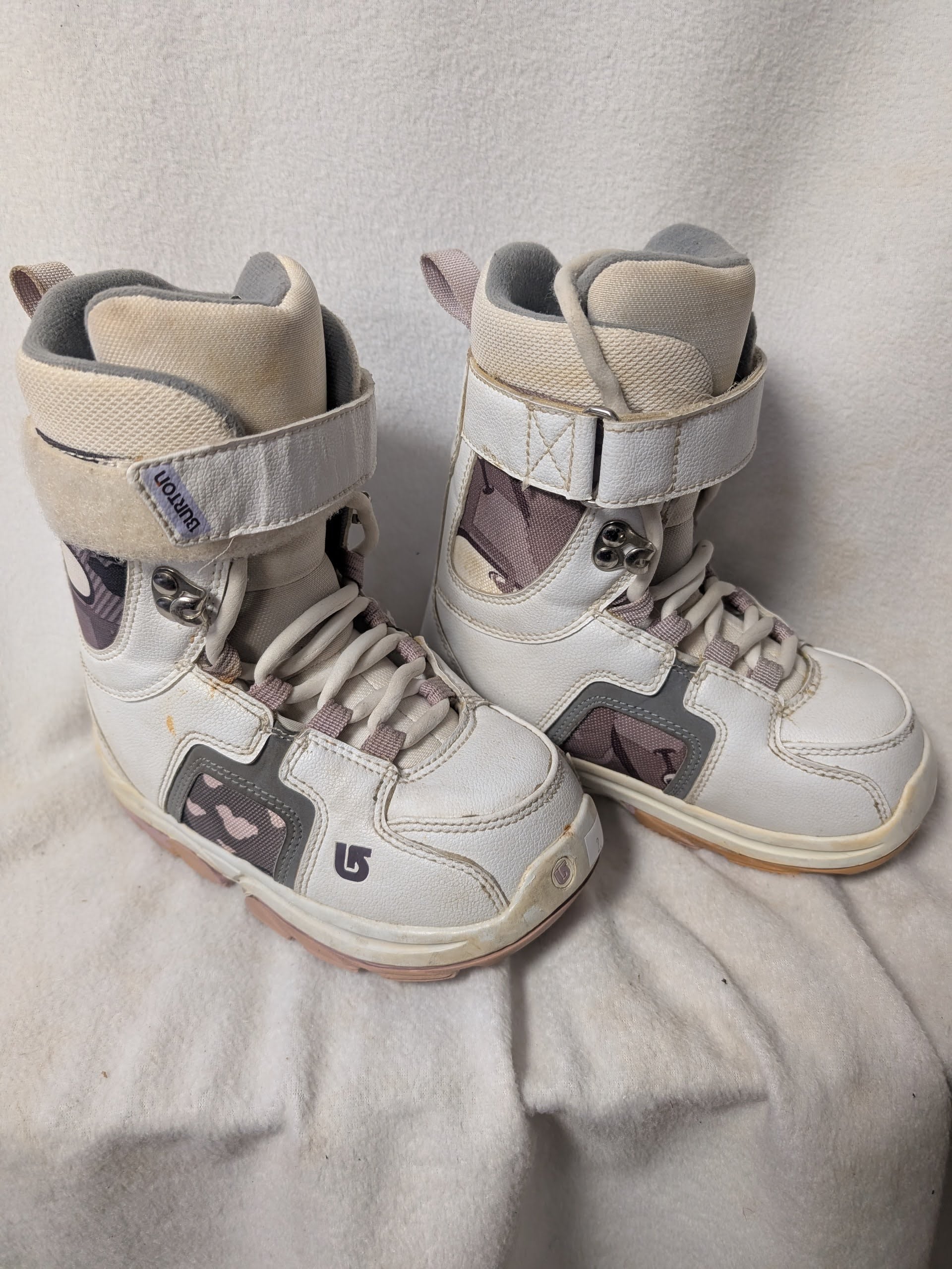 Burton Kids Freestyle Snowboard Boots Size 2 Color White Used