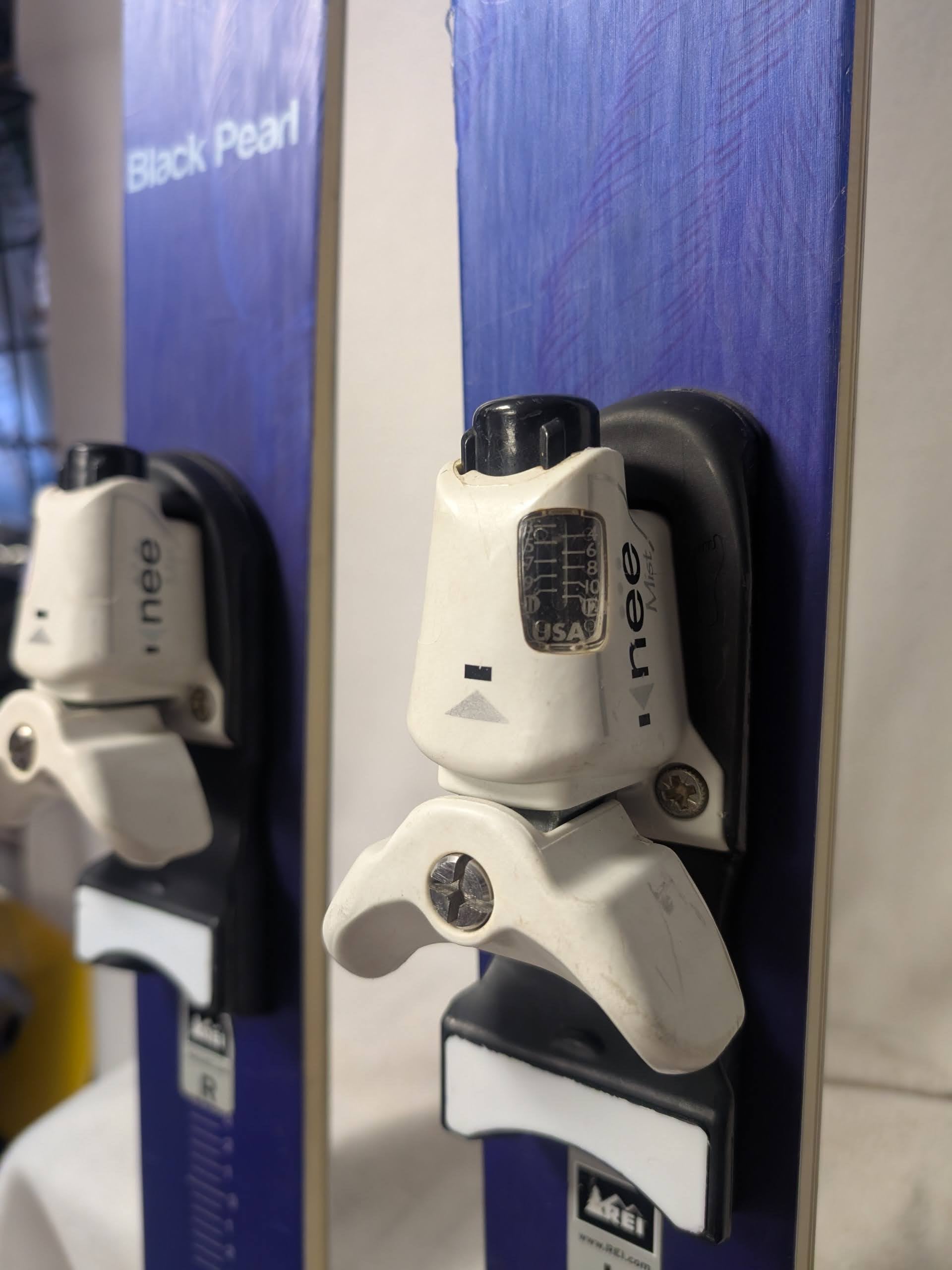 A second consideration is that as skis age, the bindings operation in particular will be compromised. All mechanical parts degrade with age. An association of manufacturers has a list which clarifies which bindings are indemnified. The indemnified ski bindings list is available on the internet. Not being on the indemnified list may mean many things, but there are two specific things one should be aware of. If the binding is not on the indemnified list, ski techs may not work on the bindings. Not being on the list means that the manufacturer cannot guarantee the safe operation of the binding. If you have a ski tech you use, it is always good to get their expert opinion on the ski prior to purchase. We can also assist with local recommendations. We try to make sure the used ski bindings we sell are on the list, but if you have any questions you can check the indemnified list. We believe the binding on these skis are also indemnified.