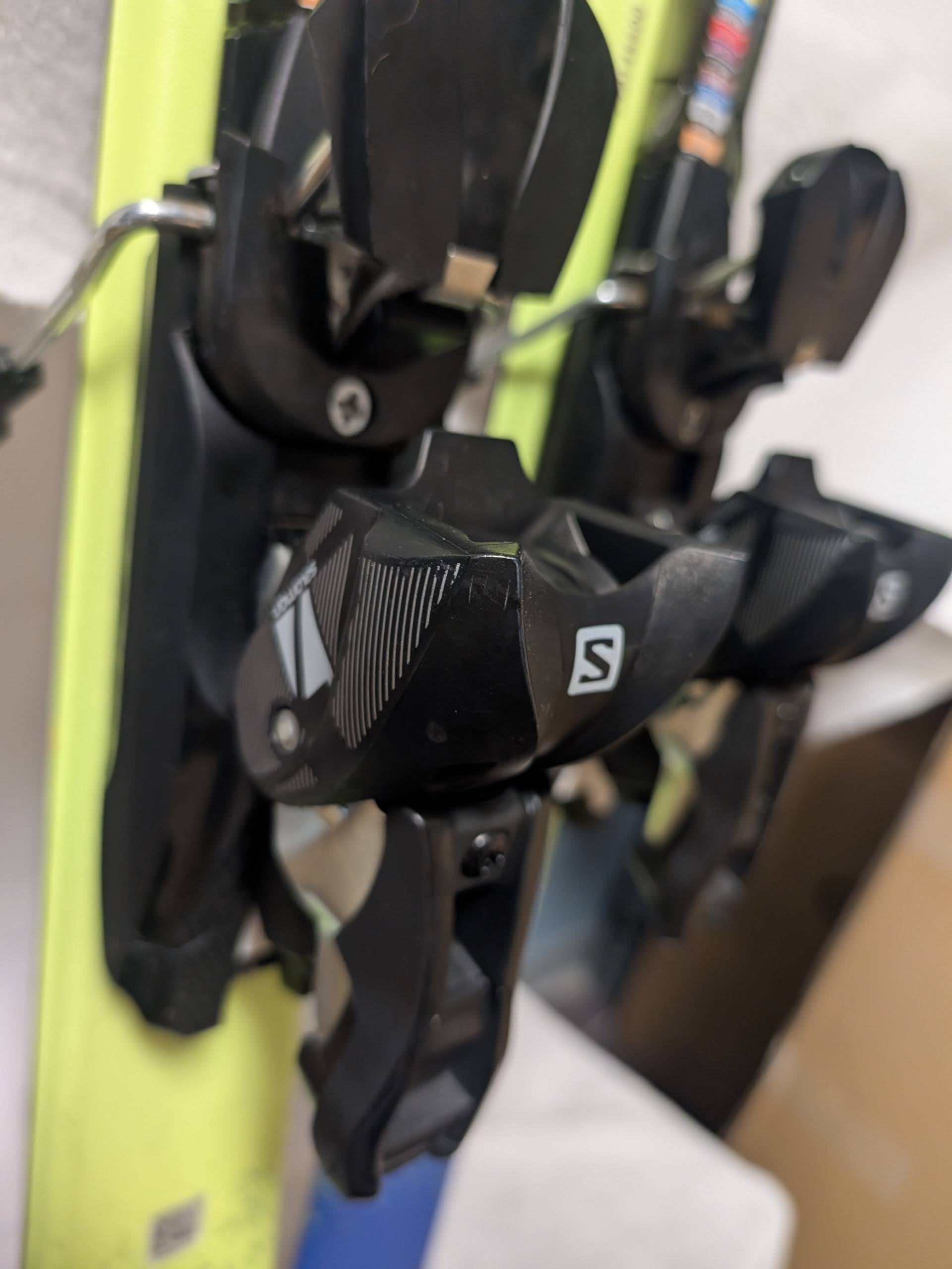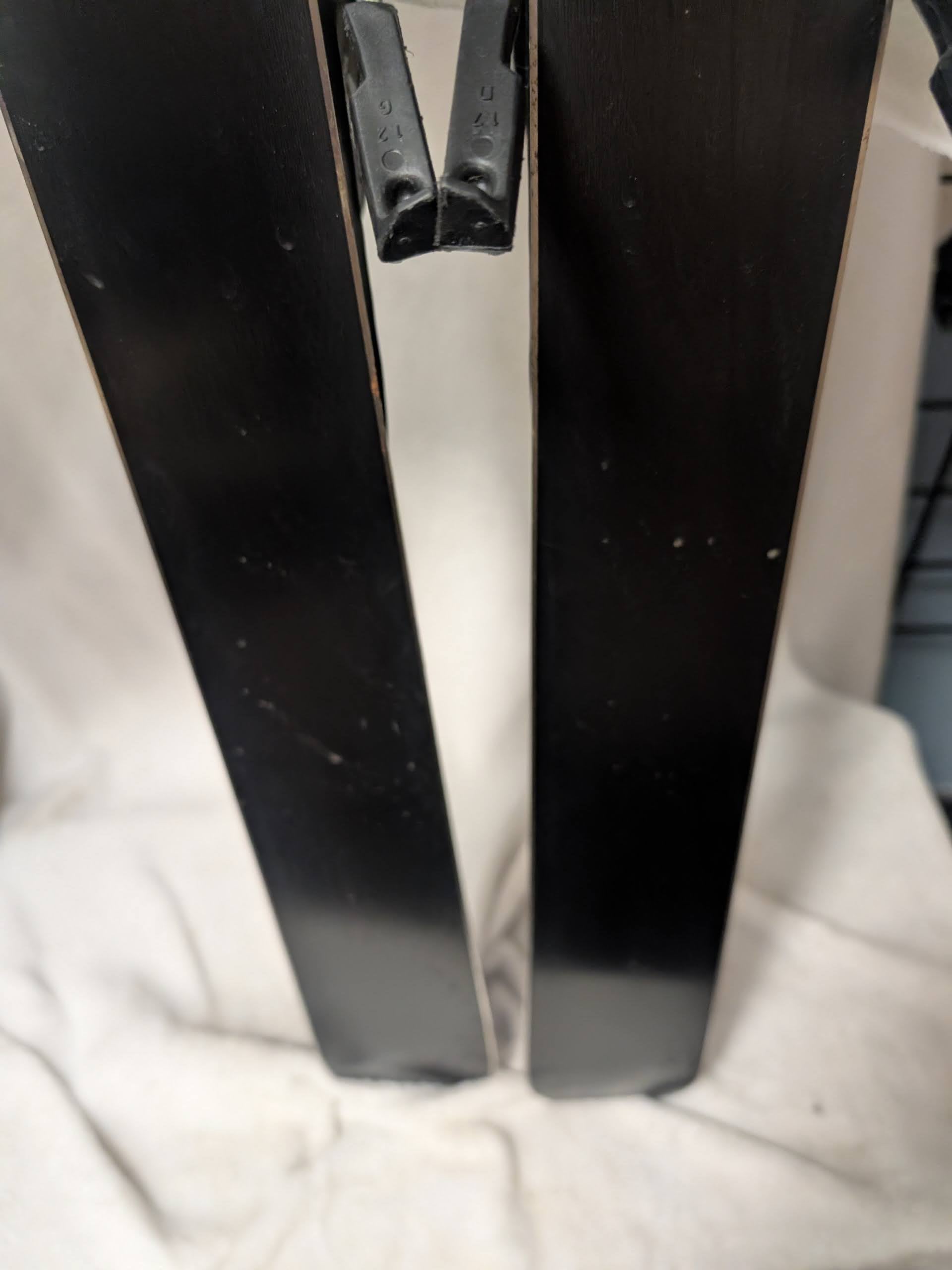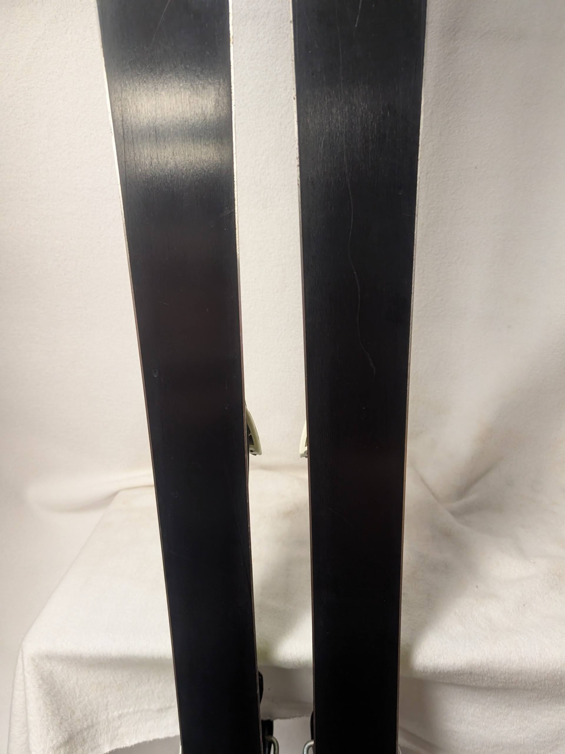 A second consideration is that as skis age, the bindings operation in particular will be compromised. All mechanical parts degrade with age. An association of manufacturers has a list which clarifies which bindings are indemnified. The indemnified ski bindings list is available on the internet. Not being on the indemnified list may mean many things, but there are two specific things one should be aware of. If the binding is not on the indemnified list, ski techs may not work on the bindings. Not being on the list means that the manufacturer cannot guarantee the safe operation of the binding. If you have a ski tech you use, it is always good to get their expert opinion on the ski prior to purchase. We can also assist with local recommendations. We try to make sure the used ski bindings we sell are on the list, but if you have any questions you can check the indemnified list. We believe the binding on these skis are also indemnified.