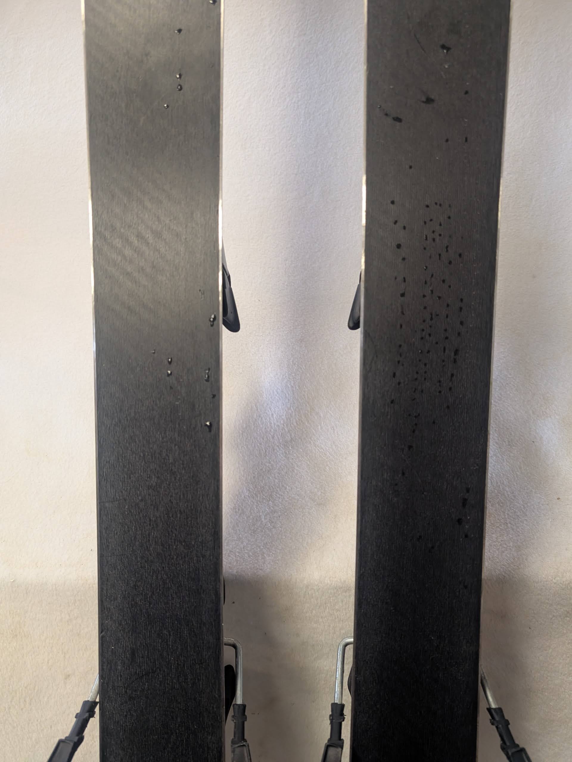 A second consideration is that as skis age, the bindings operation in particular will be compromised. All mechanical parts degrade with age. An association of manufacturers has a list which clarifies which bindings are indemnified. The indemnified ski bindings list is available on the internet. Not being on the indemnified list may mean many things, but there are two specific things one should be aware of. If the binding is not on the indemnified list, ski techs may not work on the bindings. Not being on the list means that the manufacturer cannot guarantee the safe operation of the binding. If you have a ski tech you use, it is always good to get their expert opinion on the ski prior to purchase. We can also assist with local recommendations. We try to make sure the used ski bindings we sell are on the list, but if you have any questions you can check the indemnified list. We believe the binding on these skis are also indemnified.