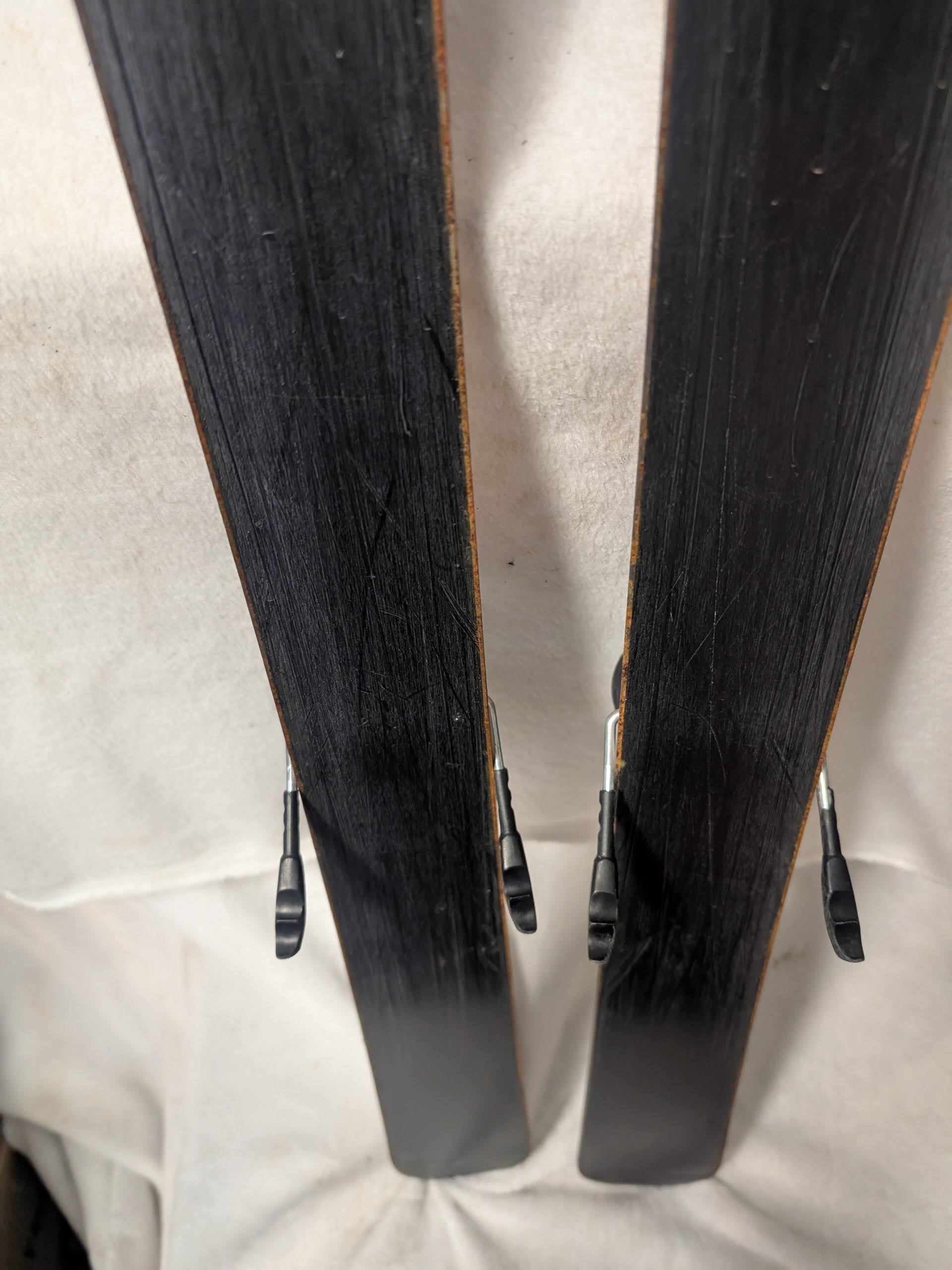 A second consideration is that as skis age, the bindings operation in particular will be compromised. All mechanical parts degrade with age. An association of manufacturers has a list which clarifies which bindings are indemnified. The indemnified ski bindings list is available on the internet. Not being on the indemnified list may mean many things, but there are two specific things one should be aware of. If the binding is not on the indemnified list, ski techs may not work on the bindings. Not being on the list means that the manufacturer cannot guarantee the safe operation of the binding. If you have a ski tech you use, it is always good to get their expert opinion on the ski prior to purchase. We can also assist with local recommendations. We try to make sure the used ski bindings we sell are on the list, but if you have any questions you can check the indemnified list. We believe the binding on these skis are also indemnified.